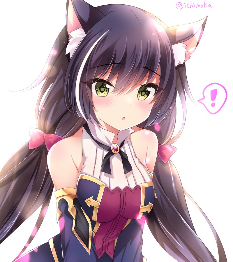【插画/CG】图片艺术作品#21322(JPG/800x900/0.54MB);是由作者「一葉モカ (ichiyou moka)」创作;图中角色有「kyaru」等;出自作品「超異域公主連結」;关联标签:kyaru,公主连结!,一葉モカ,兽耳,前发,露肩,黑发,脸红,胸部,猫耳,绿色眼,长发,视线正对,横乳,超異域公主連結,衬衫,single,双马尾,白背景,白发,princess connect!,ichiyou moka,animal ears,bangs,bare shoulders,black hair,blush,nekomimi,green eyes,long hair,looking at viewer,medium breasts,princess connect! re dive,dress shirt,twintails,white background,white hair