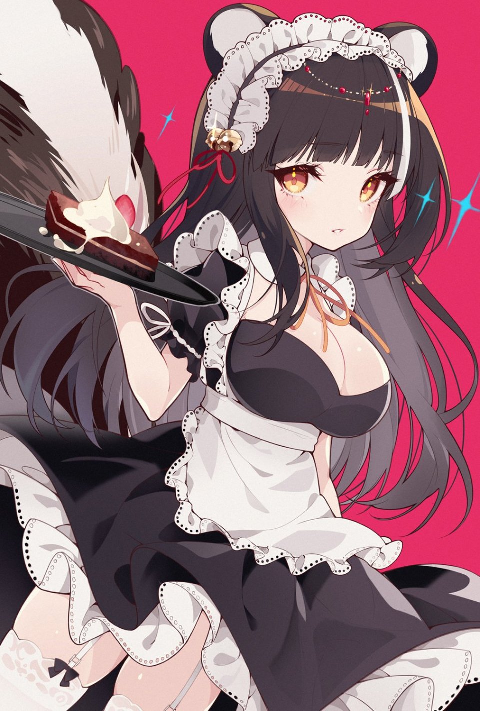【插画/CG】图片艺术作品#23418(JPG/1012x1500/0.27MB);是由作者「fukurou」创作;产权归属「碧蓝航线」;关联标签:碧蓝航线,兽耳,围裙,铃,黑发,脸红,胸部,连衣裙,发饰,holding,巨乳,长发,视线正对,回头看,女仆,红色眼,缎带,single,草莓,黑丝,女服务生,白发,azur lane,animal ears,apron,bell,black hair,blush,dress,hair ornament,large breasts,long hair,looking at viewer,looking back,maid,red eyes,ribbons,strawberry,black legwear,waitress,white hair