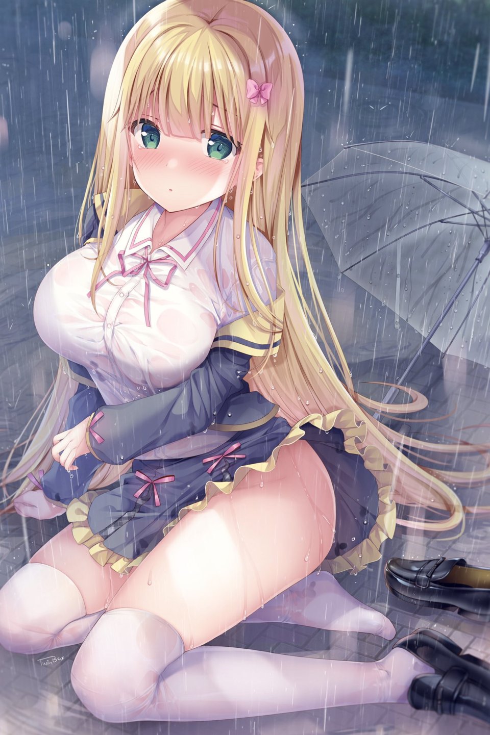 【插画/CG】图片艺术作品#25008(JPG/1364x2048/0.36MB);是由作者「TwinBox」创作;图中角色有「稲垣美波」等;产权归属「TwinBoxSchool」;关联标签:TwinBox,稲垣美波,TwinBoxSchool,breast_hold,nopan,制服,掀裙,黑丝,雨伞,露点,湿身,inagaki minami,breast hold,seifuku,skirt lift,black legwear,umbrella,wardrobe malfunction,wet clothes